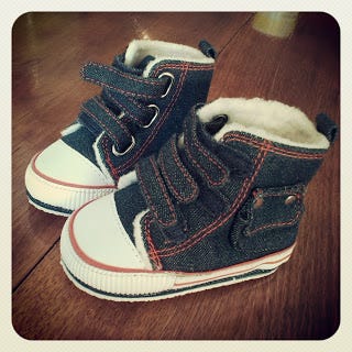 Meanwhile, I found some more little shoes in Vinnies (they look like they've not been worn). I'm going to make this baby a little hipster!