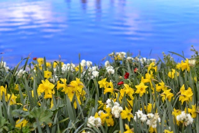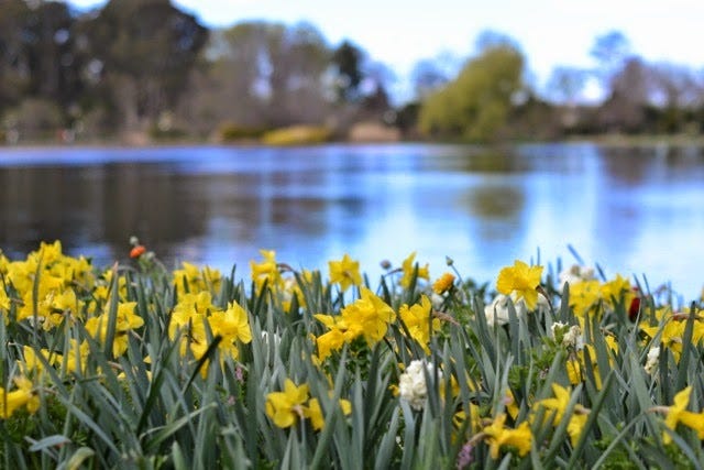 Every year there is a flower show of sorts here in Canberra called Floriade. There are a lot of flower beds laid out around a portion of the lake, a ferris wheel to see the patterns in the flowers from above and that sort of caper. A few weeks ago a dear friend, Margaret, who I described discovering as a kindred spirit here, came down from Sydney on the train for the day and we dawdled about in the sunshine, which was a real blessing. She almost missed the return train that evening because we were then too busy talking in the National Library Café, so I drove like a hoodlum and came to a rapid stop in front of the train station with about one minute to spare. The day was a treat.