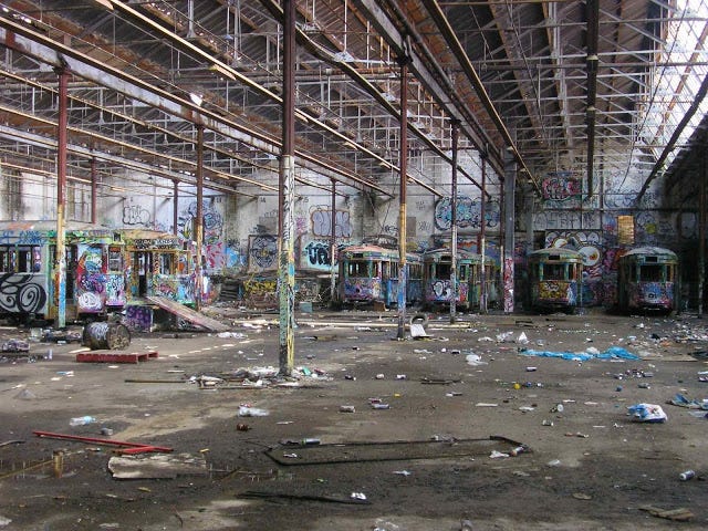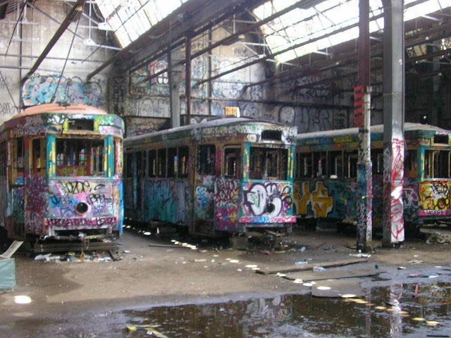 After scheming for some time, a friend from work and I decided it was time to visit the old Glebe Tram Sheds. They are now under a development proposal (the sheds will be kept as some sort of "space", but who knows what might happen to the contents) so we wanted to take a look before that begins. Technically we were trespassing, and so were hoping we wouldn't get arrested, but it's now quasi-public space and I had noticed lately that the door was wide open, so how could we resist ...