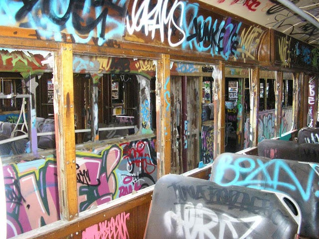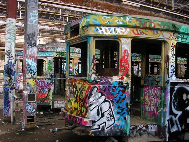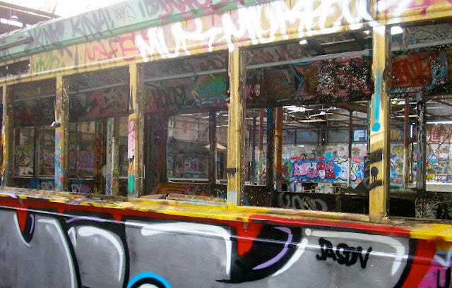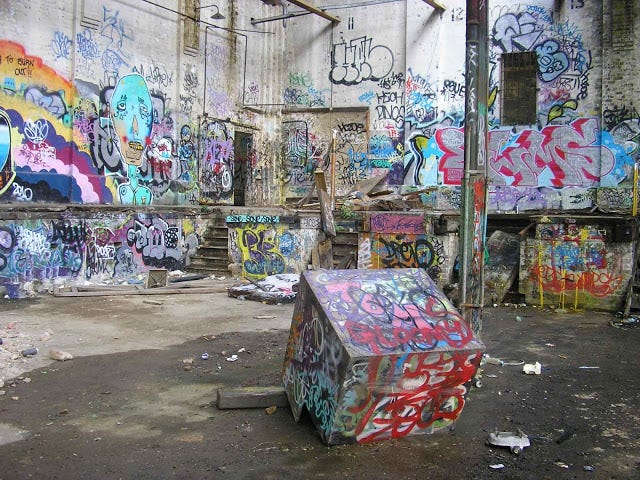 It was very eerie and quiet inside at first, and strange to be in a space so empty and yet so full of the evidence of people having been there, but then before too long we could hear voices, though for all the echoes we couldn't really tell which wall they were behind and decided to leave well enough alone. Then before we left some graffiti artists themselves arrived and I think they actually got the biggest fright. I took over a hundred photos, but here is a sample (and I am soon going to get myself a DSLR, but for now I had my old hand-me-down point and shoot). They don't really do it justice as the place was literally a riot of colour, but you get some of the vibe of the place.