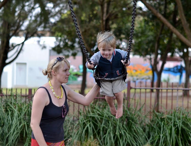 And the way to delight a four-year-old boy is relentless swing-pushing from his Mum.