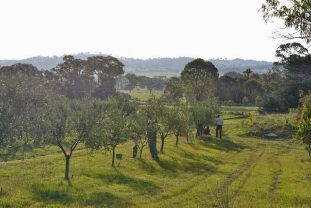 Some folks from the church I have been attending here have a little farm just over the border, and invited the whole congregation out to pick olives for the afternoon. This sounded like my idea of fun, so I went along. Then in the evening, when the fading light forced us all out of the olive groves and back to the house, they provided a magnificent dinner feast for all. I was gob-smacked by the vast quantities of scrumptious food that kept coming my way, till I couldn’t eat another thing. At one moment in the evening I was trying to make myself useful, so I was cutting up fruit salad in the farmhouse kitchen with some of the ladies, where I could hardly get a word in edgewise for the chatter and laughter, and it felt so very nostalgic. It reminded me of childhood days in Tamworth, where many of the church folks had farms and we’d go out to them for a spot of farming and a get-together. Good times then and now.