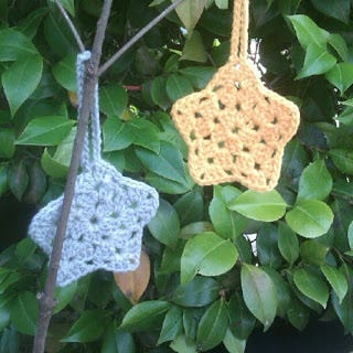 It seems I’ve dropped the ball lately. On Saturday we had our next markets at church. I beavered away last week making crochet stars in yellow and grey (aka gold and silver, if you please). I thought I should add in the grey for those who have a David Jones style Christmas tree in pink and purple, or something else that doesn’t lend itself to retro yellow. (Let’s face it, those trees probably don’t lend themselves to crochet of any sort, but grey might have more of a chance.) Here’s a phone picture from the day.