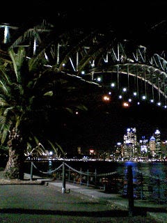 I don't really know why I take pictures on my phone, or why I then blog those I do, but here are some shots from the other night when I was in Kirribilli with my friend from work. For those of you from foreign shores, here you have the Opera House, Sydney city and the Harbour Bridge (plus the odd palm tree).