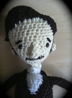 You can go for many years in this life under the impression that the things you are interested in are largely unrelated to each other. Then one day you find the connection: a crocheted Jane Austen and Edgar Allen Poe. From this etsy shop.