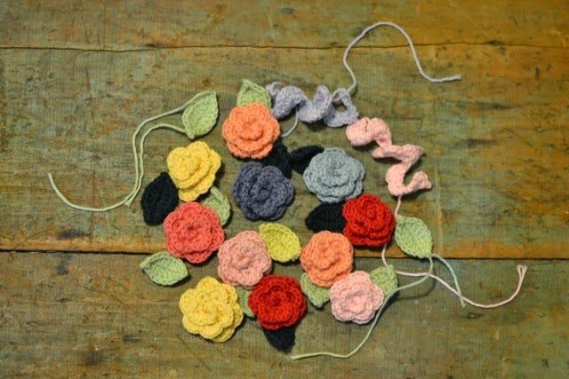 And finally, I am working on a little contribution for the craft stall at our church fair this coming Saturday. They have brooch pins on the back.