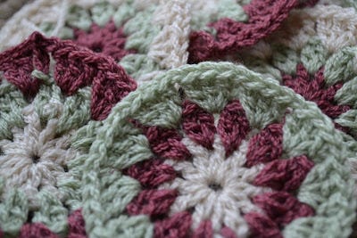 This is the beginning of a project that will take me a long time, and there will be more colours involved, but these are pretty are they not? I am loving the 'antiqueness' of these colours - old rose, soft lime and shortbread are their names, and they turn out best with a brewed cup of tea.