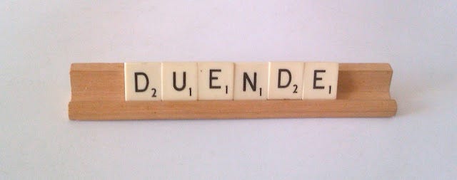 Since I like a good untranslatable foreign word for a thing, especially a thing wherein lives the melancholy, I liked this post by Glendyn at Hoaxville about the Spanish word Duende (apparently considered by linguists and translators as the hardest word to translate from Spanish: see here). It would seem that it's meaning in art, tener duende (having duende), is a little different from it's straight translation. It's all a little difficult to explain, obviously, but I do like the quote from Nick Cave, taken from Wikipedia, which I will reproduce here as it's a little hard to read in Glendyn's post: