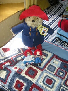 With the Paddington Bear and Raggedy Ann and Andy some indulgent Aunt he has bought him.