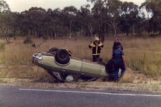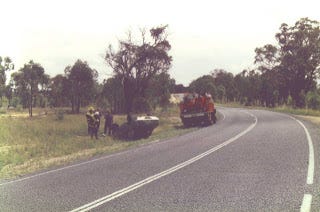 But, enough of all that. Since I have a new scanner that I am yet to make much use of, I thought I would give you some reason to believe that I know what extreme my-life-is-about-to-end fear is. So, here is the photographic evidence of how one of those moments ended. This was my first car, and the accelerator cable jammed full throttle on the open road, and I went a little bit too fast - and I couldn't stop.