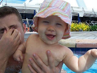 I actually met my brother-in-law at a Fighting Words conference, before my sister then met him in Toowoomba where he was on pilot’s course learning to fly helicopters in the Army (but I had nothing to do with that scenario!). He's now in Iraq with the Australian Army, so we are all praying. Here's a few recent pictures of him and my youngest niece (sweetest little thing in the world), the day she discovered the joy of splashing.