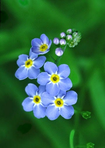 Forget-me-nots are sweet, unpretentious little flowers, that grow in road-side ditches. I like them for that.