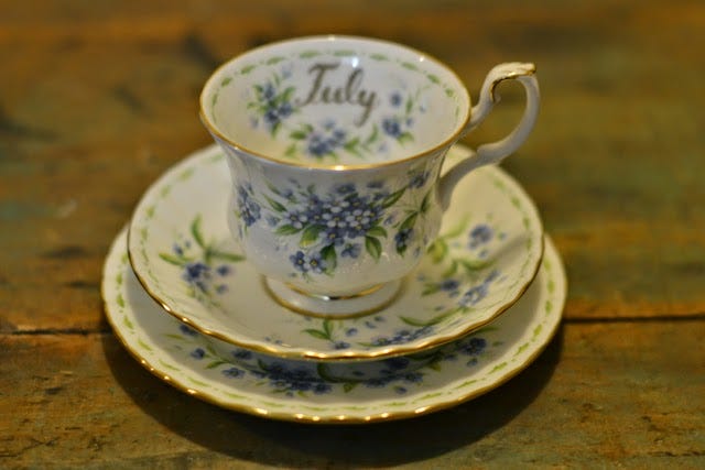 I had a birthday this week. This is one of the gifts I received. It’s from the Royal Albert Flower of the Month series and adorned with forget-me-nots.