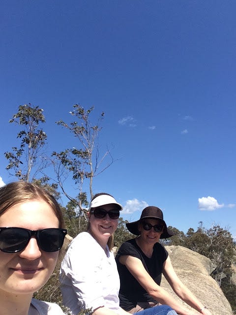 So that was the week off. Then yesterday I went on a bushwalk with some colleagues, just out to Booroomba rocks, south of Canberra. It’s beautiful out there and we had a fabulous morning. I am very happy to have found some bushwalking enthusiasts and they were calling it “Ali’s Bushwalking Club”, so I am chuffed that I had a personal bushwalking club, even if it was two people for a day. They are already asking where we are going next, so maybe it will become a real club: bushwalking for weekend sleeper-inners who just want to do a little exploring. When we got to the Namadgi National Park visitor centre there was a group of walkers sitting under the trees with drinks out relaxing and I said to my friends ‘they are probably finished’, because the problem I have found with bushwalking clubs is that they want to begin at some ridiculous hour on a Saturday morning. We met there at 10.30 am, which is much more civil (I just have to get some good clothing to make sure I don’t get any more sun, instead of the old dregs I dug out).