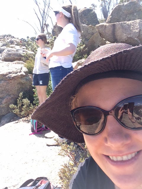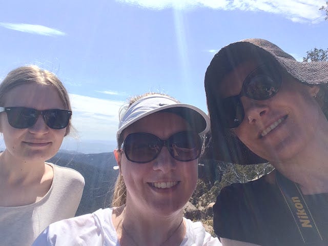 Here are some pictures. None of us are into taking selfies, but we decided to give it a go, with varying success. It was hazy and the light was not the best, but you get the idea. We carried on with the clichés about refreshing our souls and restoring our perspective etcetera, but it works.