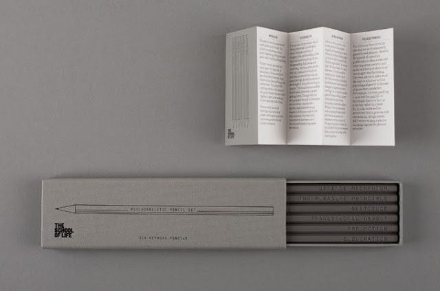 I find myself suddenly wanting a set of psychoanalysis pencils. (From The School of Life shop.)