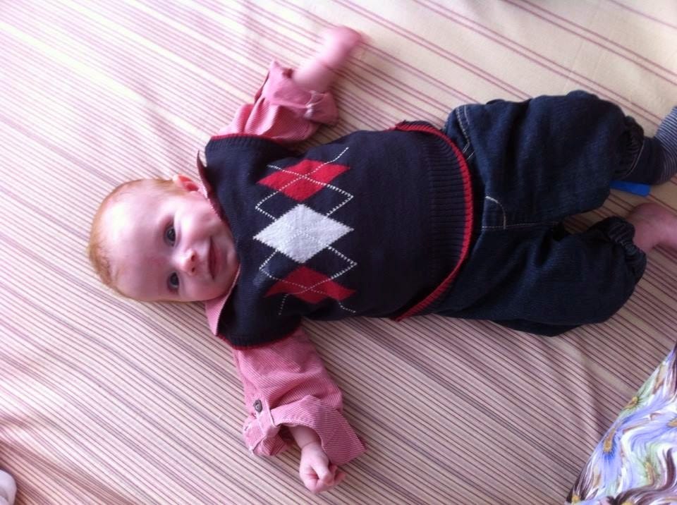 It's been a while, and so I thought some of you might like to see a little update on my nephew. He's coming along well, and is just super cute. He has a little catching up to do in weight gain, but other than that is doing fine. You can see his scar in some of these pictures, which looks remarkably good given it's two months since his whole chest was cut open.