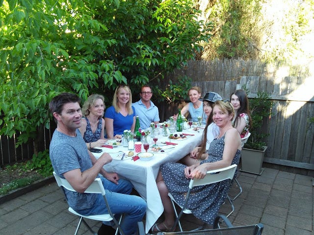 Here is a picture of all my family, minus the four smallest children who were having their own fun, in my courtyard, which it was fun to be able to host. It's not the best shot of me at one end or my brother-in-law at the other, but we will keep it real.