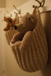You can get the pattern from a link on this post (a new blog from two crocheters who make good patterns, available in their etsy store). I have a few spots where I think a removable hook (because I’m renting) with one of these hanging would be just the thing.