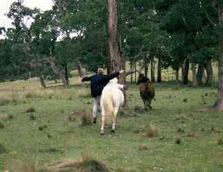 And just because once wasn’t enough and you're supposed to get straight back on your horse, as they say, I had another go. (I left out one shot here because it was the most unflattering shot of my behind, looking as big as the behind of the horse! These pictures, in which I look a little hefty I must say, were taken during my fourth year of university, when I had 'let myself go', and those pale jeans are just tragic!)