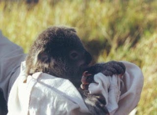 What we were actually catching them for was to monitor the impact on them of the Logan Motorway, up in Queensland, which was new at the time (this was 2001). Koalas are not endangered. That is a spurious myth - and the fact that it is red-listed as a threatened species in America is ridiculous. The list of marsupials in this country in much graver danger of extinction is too long to mention. However, this particular population is vulnerable and was threatened by this road, so we were investigating. So they were tagged, then marked temporarily and released.