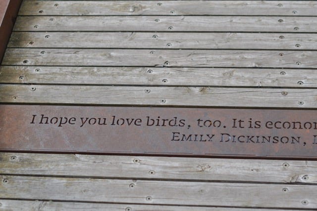 Last weekend I went out to Tidbinbilla Nature Reserve with my sisters and nieces and nephews, where someone involved in it's construction had a poetic bent and there are interesting quotes scattered about in the infrastructure. I took a photo of this one on a board walk, which has inspired a return to Emily Dickinson's poetry.