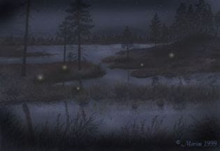 (According to Russian folklore these wandering fires are the spirits of stillborn children, which flit between heaven and the Inferno.)