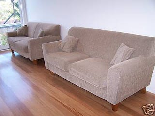 My current flatmate is moving out soon and taking her couches. So I thought I’d just take a quick look on ebay and see what was around in terms of couches. I noticed that second from the top were these two couches, so far up to $210, which looked pretty good and had 5 minutes left to go on the auction. So I logged in, had another look at the pictures, then without thinking made a bid. There was another bidder online, but would you believe that somehow I won them for $214 dollars!! I hadn’t even looked through the other options. I hadn't even thought about what style I might want, what colour might look best. Nothing.