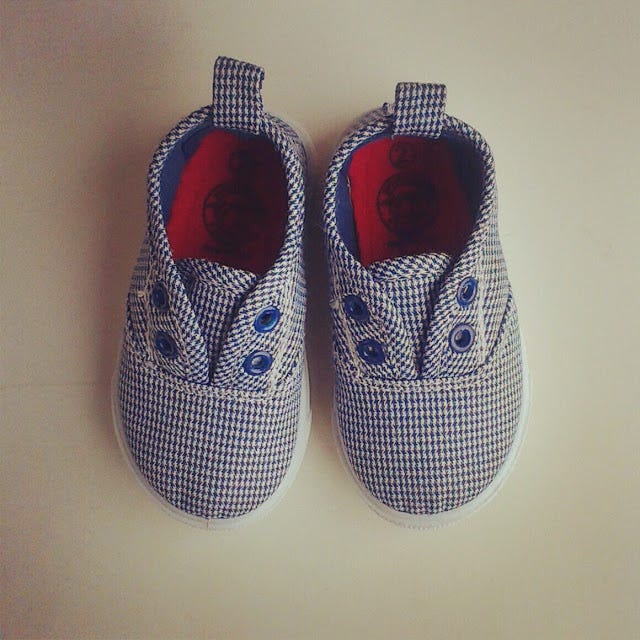 I found these little shoes in a op-shop a while back and bought them because I thought they would do for either sex, but they are a little more on the boy side, which is convenient. I have a "thing" for teeny shoes. Now I know what to keep my eye out for in op-shops (I only pick out the good stuff), and can see what kind of boy things I can turn my crochet to, which will be fun.