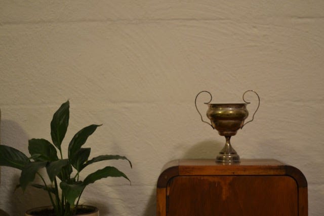 A few weeks ago I fell under a strange compulsion to buy this old trophy from the tip shop. So you can all be champions!