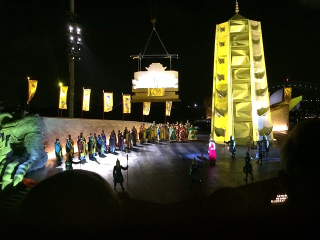 I did make a quick trip to Sydney the other week for a night at the Opera on the Harbour. It was my second year to be treated to such a spectacular, with my dear friend Margaret. Every year she gets two tickets for her birthday from her husband, who doesn’t like to go, and so I have been instead. It’s a very fine night out. We go by water taxi across the harbour, the stage floats out on the water backdropped by the Opera House and Harbour Bridge, the props are always magnificent, there’s fireworks ... This year the opera was Turandot, by Puccini (though Puccini didn’t actually finish it), which, when you pause to reflect on it, is actually a rubbish story. In brief, Prince Calaf, driven by lust, is determined to try for the hand of the beautiful but brutal Turandot, who’s executed all men who’ve previously made an attempt. He solves her three riddles and wins her hand, she still refuses to have him, so he offers a counter riddle, that if she can find out his name before dawn he will die. There is one person who knows his name, a slave girl named Liu who loves him, so Turandot decides to torture her to find it out. Afraid she might quail and reveal his name Liu kills herself to save Calaf. Calaf takes no notice of this sacrifical death of the faithful Liu, because he just wants the murderous Turandot. So much so that he is willing to take her by force. Finally, when he kisses her, Turandot crumbles and admits she was afraid to be controlled by him. It’s thoroughly dysfunctional. The only true heroine is Liu, and even she is somewhat ridiculous, besotted with Calaf because one day he smiled at her. I also found that much of the music was somewhat forgettable and tuneless, except for Nessun Dorma, which redeems it all. That said, it’s a wonderful evening out, irrespective of what the Opera actually is. It’s the experiential combination.