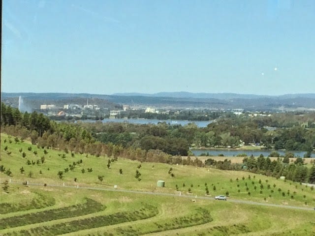 I went and sat in the Arboretum cafe this afternoon, for the sake of leaving the house and driving in the countryside. It's very pleasant on yonder hill. The cafe is a vast high-ceilinged cavernous space, but is strangely not noisy and stark, and it has this vista in its favour, this being taken from my table out the window.