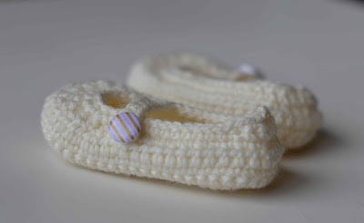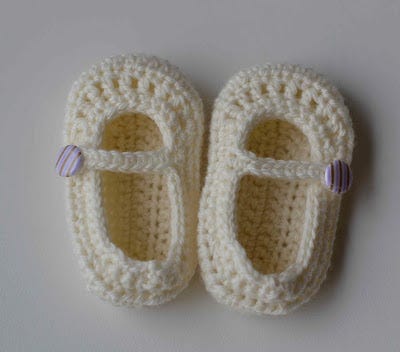 This weekend I made Mary-janes for my niece Violet. (I have such a long list of crochet projects to make right now. Nieces! I love making sweet things for them, but I think I would do well to teach my sisters how to do this ... My younger sister in particular is always sending me photos of things I could make. :) ...) These are such cute little creations. I've always been rather taken with tiny baby shoes.