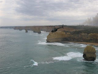 My brother-in-law, as some of you know, is a helicopter pilot with the Australian Army. I often gets emails of some rather spectacular photos, the most spectacular or which unfortunately I can't usually post on the internet, but this one I think is quite harmless. He recently had to fly this little helicopter from Darwin to Melbourne to perform in an Airshow, and so here he is flying by the twelve apostles.