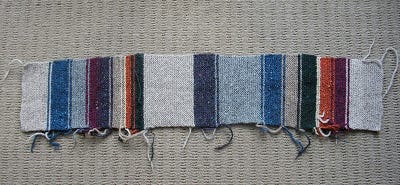 It was when I was at L’Abri in Switzerland in 2001. In the evenings we’d all sit around in the big living room on the ground floor of the five-story chalet, the spectacular snow-covered mountains outside, the fire burning inside (or maybe there wasn't actually a fire in that room, but it sounds nice), engaged in cerebral conversations about theology, philosophy, or any other topic, some girls would knit and crochet, some guys would strum guitar. Those were wonderful times. Anyway, while there I started a scarf from some hand-spun wool an English girl and I found in a Salvation Army shop down the mountain in Aigle. I then finished it on the train from Basel up to Nassjo in Sweden. Well, sort of finished it. It turned out a bit too stiff and scratchy to make a good scarf, and I never dealt with the ends. But I have dug it out and think I might finish it off and hang it on a rod for some narrow piece of wall somewhere. I’ve never gotten rid of it because I feel quite sentimental about it.