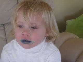 For other news, my niece, who up until this point has stayed out of stuff she wasn't to have, found the blue food-colouring in the cupboard and ran off with it.