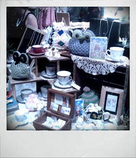 Granny square teapot cosies (there's about four if you look closely), and owl teapot cosies (the owls look a bit too much like old style macrami things to me, but they are sort of cute).