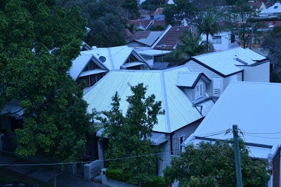What I was unprepared for though, is the monumental difference this made. Here is a photo comparisons between "Auto" mode and "P" mode with the white balance on "incandescent", from my balcony. (To me, white balance is one of those things I'd rather deal with at the print level, not at the time of taking a photo.)