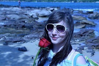 All was not completely lost as I was able to adjust the photos in iPhoto to some extent, though I don't know that I have managed to get the colours completely true. Here are my corrections. The reason my nieces were getting about with red roses is because as we scrambled over the rocks they actually started washing up out of the sea, which was strangely romantic and provided us with some fun fantasising. I told the youngest one that someone over the sea must love her. And she says 'but how would they know the roses would wash up just as we walked past', and well, that's just the magic isn't it. Only Hollywood has the answer to that.
