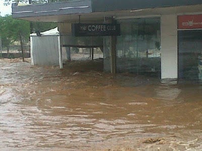 You've probably all seen it on the news, but it's unbelievable what happened in Toowoomba yesterday afternoon, when a wall of water eight metres high came through town unexpectedly. During the time that I was up there I stayed home one night with the kids while my sister and brother-in-law went out. They ended up this cafe (you don't have so many options for a coffee later in the evening up there).