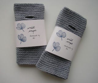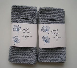 Some wrist warmers I made as gifts (totally copied from here, where the font she uses on her labels is actually a little like my normal handwriting! - and I have just used a Kikki-K stamp).