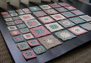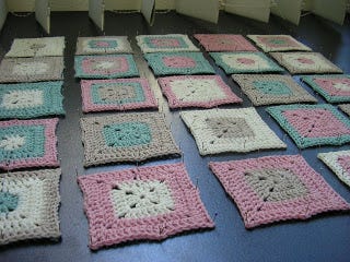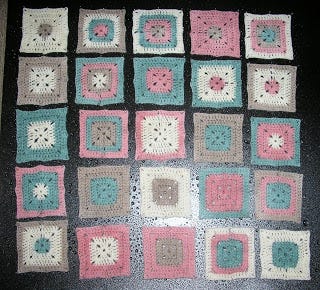 Close up of those squares again (if any of you are very astute, or actually looking at this crochet post, you might notice that one baby square is missing - but never fear, I left the 49 and went in search of the square which was lost, and found it!):