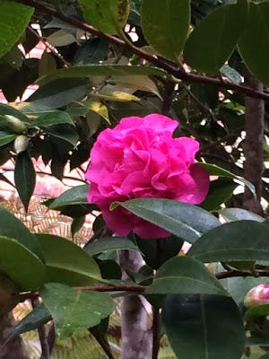 One of my large camellia bushes has begun flowering and is this rather spectacular cerise colour.