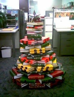 They launched a Christmas decorating competition at work, with the silly theme that it had to be based on the achievements of your team in the past year. But I got a little inspired - in jest initially but then decided that it could actually work - and so this afternoon a colleague and I constructed this, with suggestions from another colleague and the odd passer-by. It was a good “team-building exercise” and all that as we got together and consulted and negotiated over strategies and colour arrangements ... and built something!