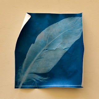 Then I tried a feather and didn't expose it as long. You really do need to let them completely dry before you can see the final result, because it took a long time for them to turn this blue.