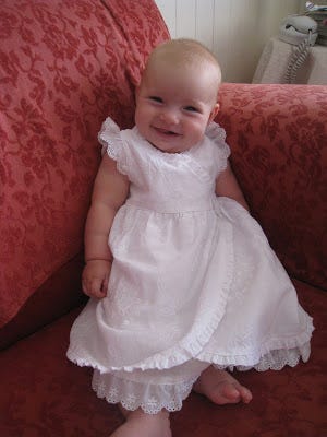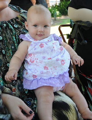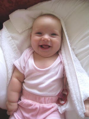 I have nothing to say, so, how about some pictures of my littlest niece. She's the cutesiest, smilingest, rolly-polly-est ever. I say my sister does "extreme kids". The first one was extremely good, the second one was extremely, um, bad (he's a little difficult, but we just won't talk about that - as my sister says 'he's lucky he's so cute') and then comes the baby that lies around smiling at everyone all day.
