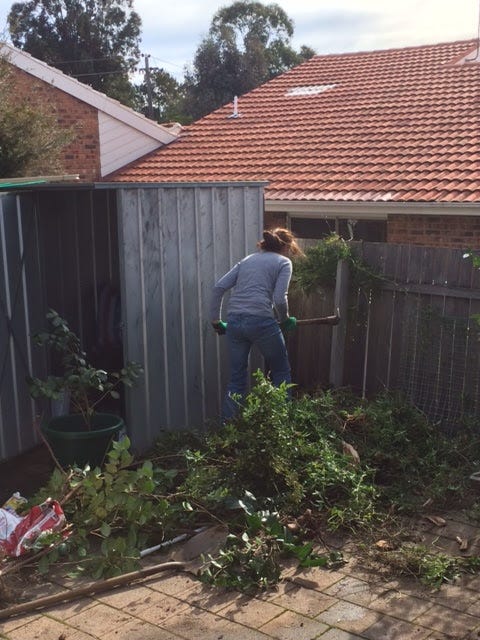 Wednesday morning was more painting, then lunch with the rector, assistant minister, and families and children’s minister, in my youth minister role, for us all to talk about what we’re doing. Then Bunnings visit the third (I think!) for a replacement jasmine, which I decided to plant on top of that old stump to grow along the fence, and more painting/waxing furniture.