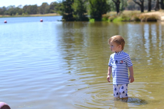 He's a happy little boy, who is very little trouble (except that he gets into everything, though he's not actually being "naughty"), but he doesn't often break into a big smile, and will sometimes fix you with a solemn little face like this one (I think he's also wondering why people try to talk to him with big black things, i.e. cameras, in front of their face). His Christmas t-shirt, ordered online, was way too big for him, so looks a bit shabby, but still cute.