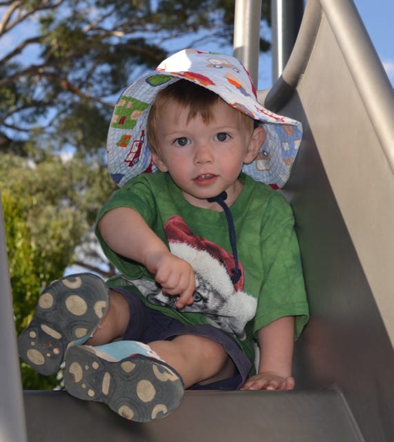 In the park near my other sister's house on Christmas day. He went up and down this slippery dip innumerable times. Strange how children love so much repetition.
