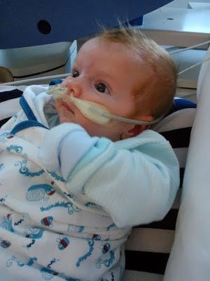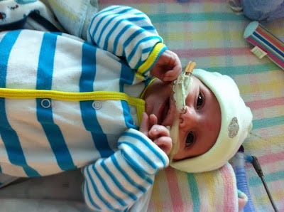 This little fellow is likely to have open-heart surgery tomorrow. He needs the surgery to thrive, and hopefully once they have repaired the hole that will be the end of it all and he will be on the way up. Still, the surgery itself is rather distressing, and he is not as big as they wanted him to be, so we are praying that all goes well.